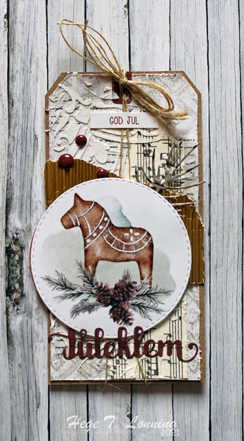 Som base har jeg brukt en ferdigkjøpt tag i str. 6 inch. Tagen er derfor stor nok til å brukes som julekort, eller den kan brukes som pakkelapp om man heller ønsker det.